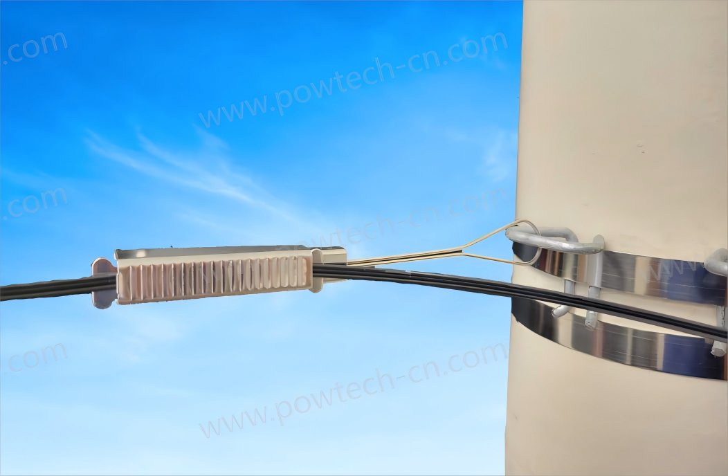 This clamp is used for binding the hanged wire of the self-supporting drop cable, and hanging the cable on the supporting device.