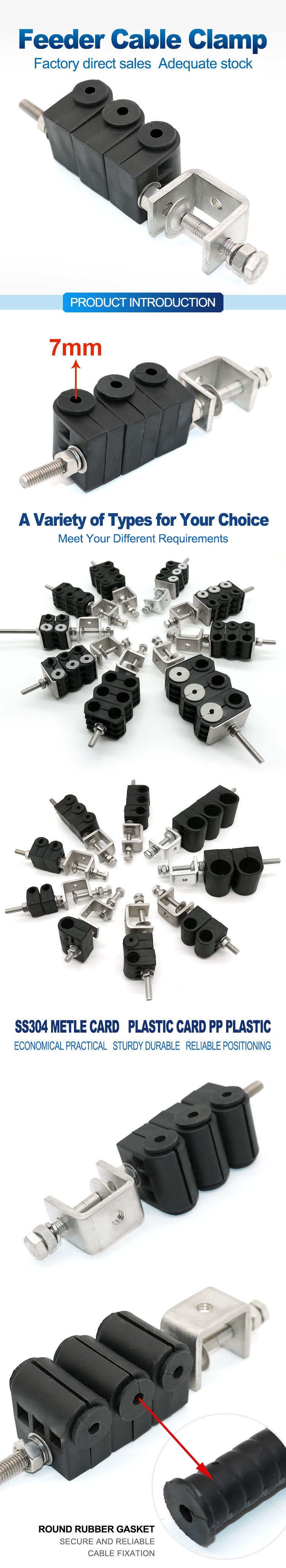 Feeder cable clamp is widely used in site installation to fix coaxial feeder cables to base towers, the feeder cable clamps provide an efficient way of managing & securing the feeder installation system.