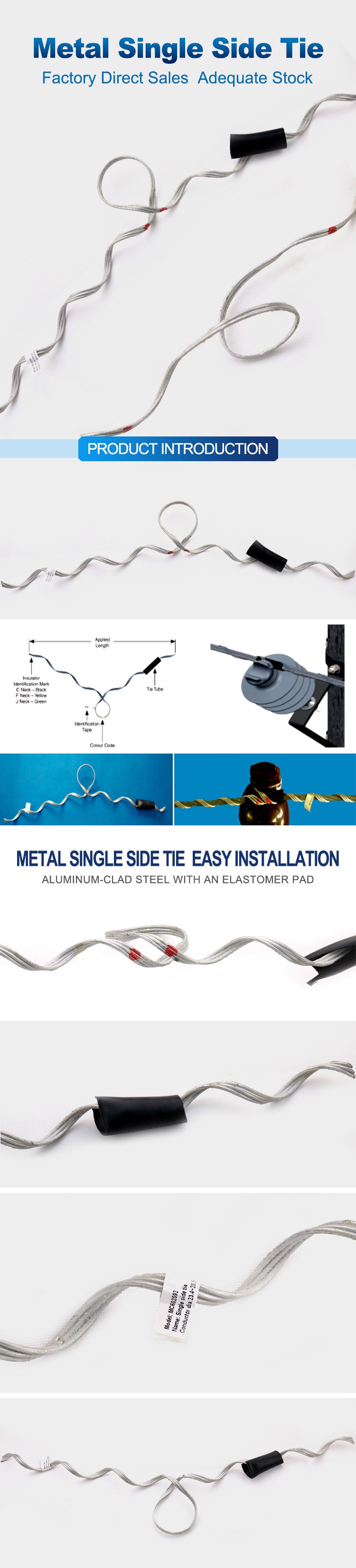 Mechanical:Metal Single side ties will develop unbalanced and lift-off loads equivalent to , or in excess of, a hand tie over covered conductor. When installed with a pad on bare conductor, single side ties provide superior protection against abrasion and all types of conductor motion. The pad is a resilient cushion at the point of contact between conductor and insulator.